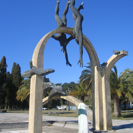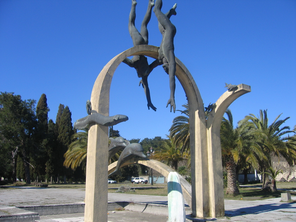 🔹 Набережная Пицунды, кофе на песке и фотосессия с знаменитой скульптурой "Ныряльщики".
