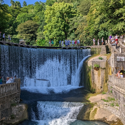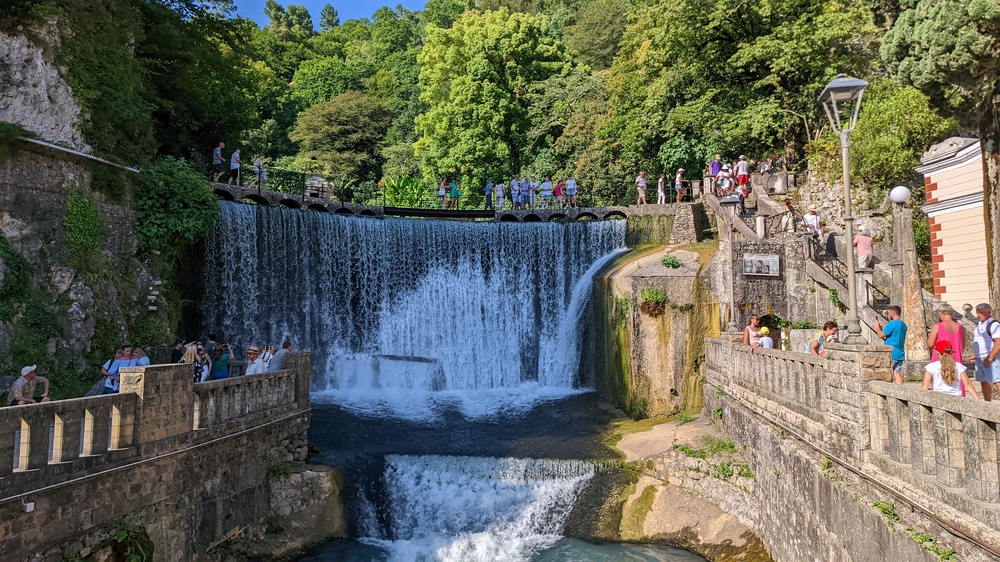 🔹 Искусственный водопад и руины древней крепости Анакопия.
